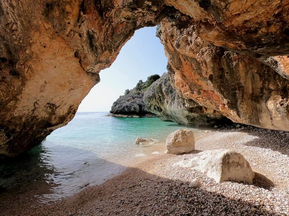 Eglina Beach in Kefalonia is a tranquil, sandy cove known for its crystal-clear waters and its unique proximity to the