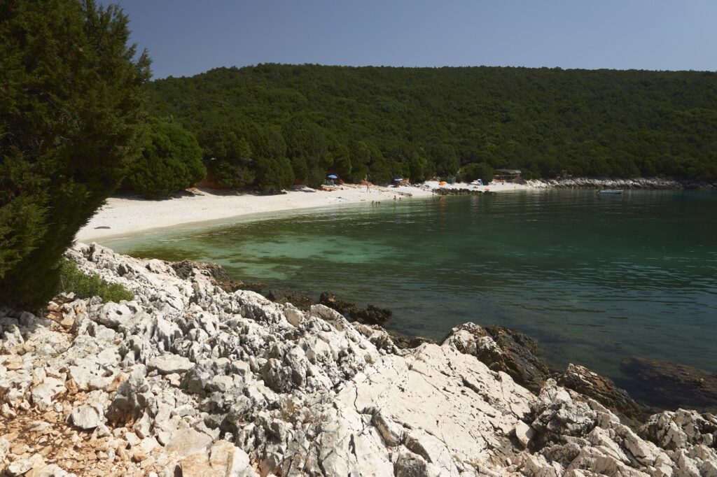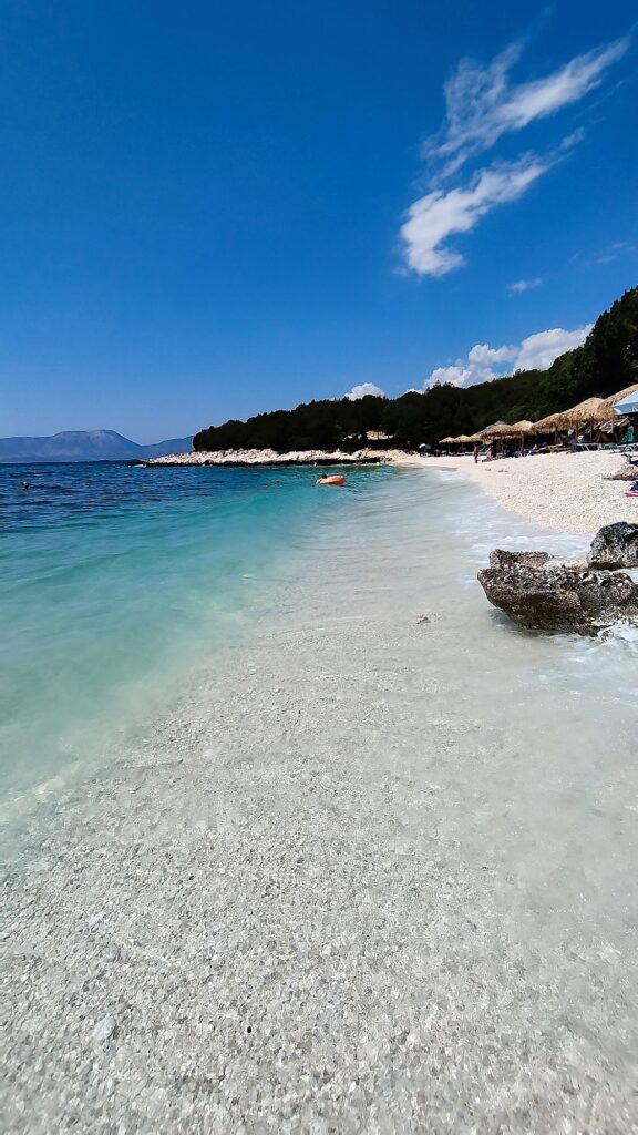 - White Pebbles: True to its name (which translates to “White Beach”), the shore features white pebbles that give the water a brilliant turquoise hue.