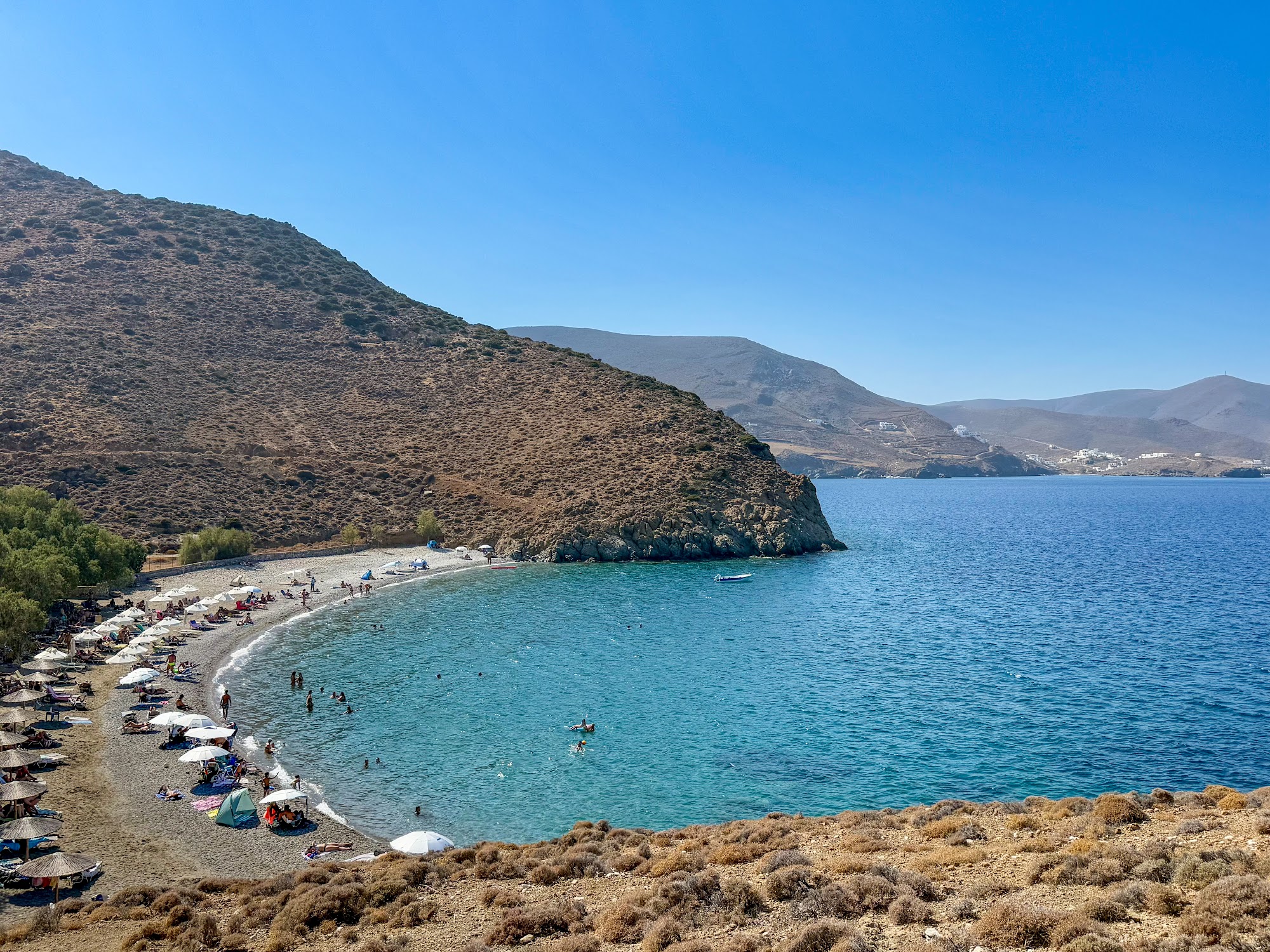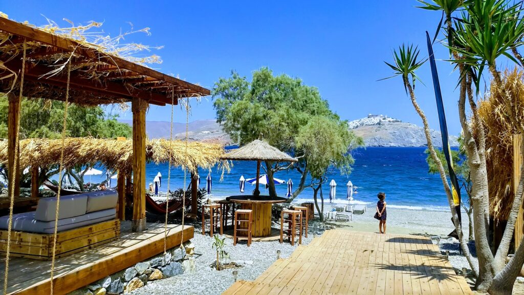 - Picturesque & Iconic: The standout feature is the stunning view of the Castle and Chora perched on the hillside. Many reviewers recommend staying until sunset for a drink at the beach bar to enjoy the “magical” scenery.