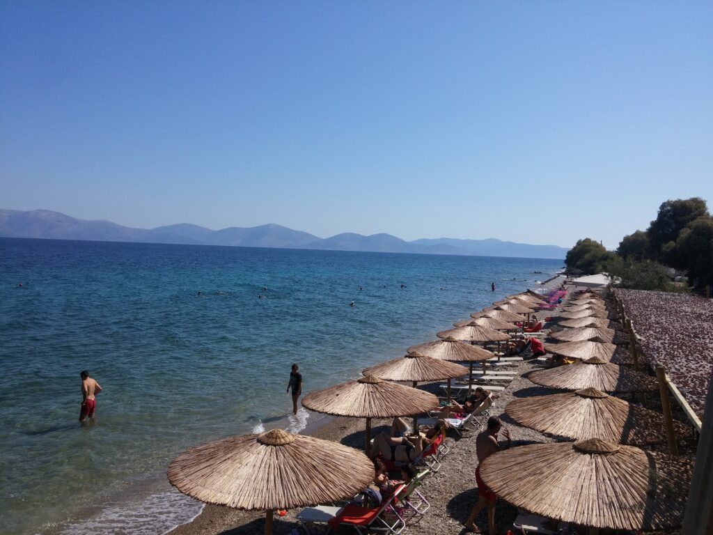 - Wild & Scenic: The beach is located at the end of a winding road that offers spectacular views of the Evoikos Gulf. It is often described as a more “authentic” and less commercialized alternative to the crowded beaches of southern Athens.