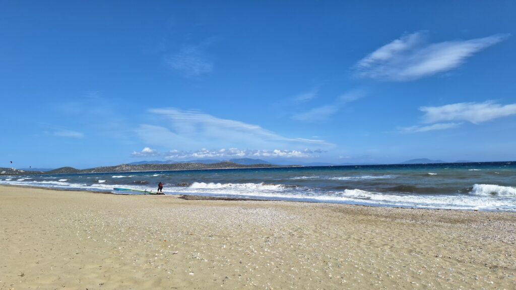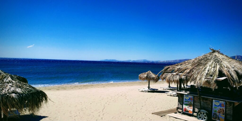 Psatha Beach (West Attica) is a large, scenic destination celebrated for its “island vibe” and crystal-clear waters, located about 60