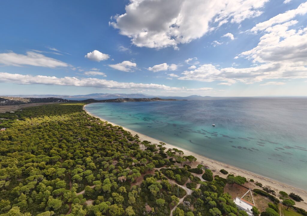 Schinias Beach in Marathon is one of Attica’s most beloved coastal destinations, renowned for its unique combination of a pine-forest backdrop and shallow, turquoise waters.