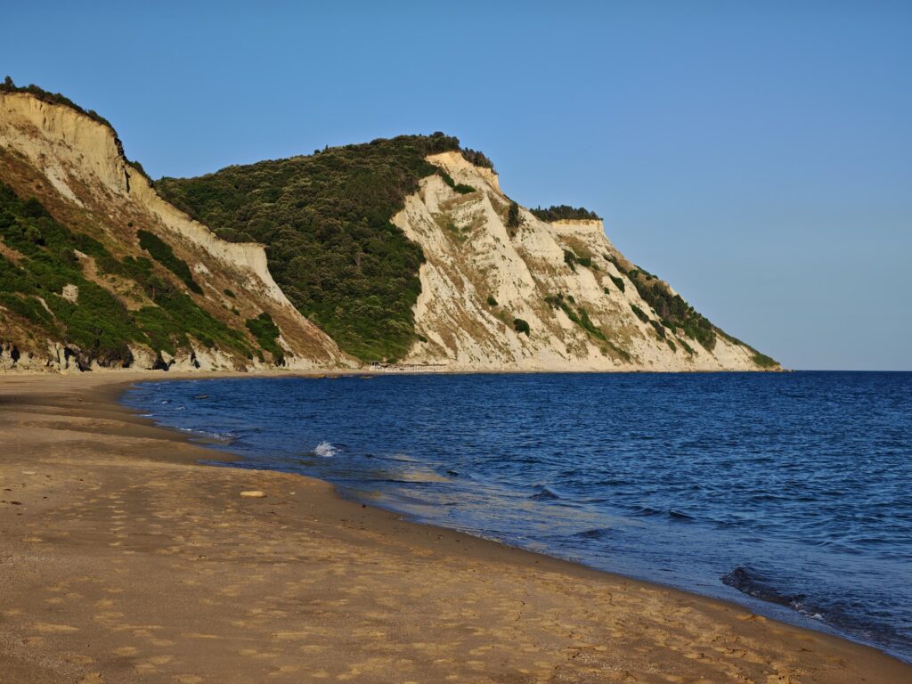 When most travelers think of Corfu, they envision the manicured resort strips of the north or the bustling cafes of the Old Town. But for those willing to drive to the island’s southernmost tip, past the lively streets of Kavos and up a winding, unpaved road, a different world awaits. Arkoudilas Beach is the island’s last frontier—a raw, cinematic stretch of coastline where towering clay cliffs meet the infinite blue of the Ionian Sea.