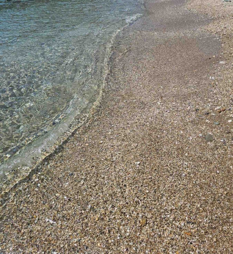 - Sand and Fine Pebbles: The shore is composed of a mix of sand and fine pebbles. The seabed is mostly sandy, so water shoes are generally not required.