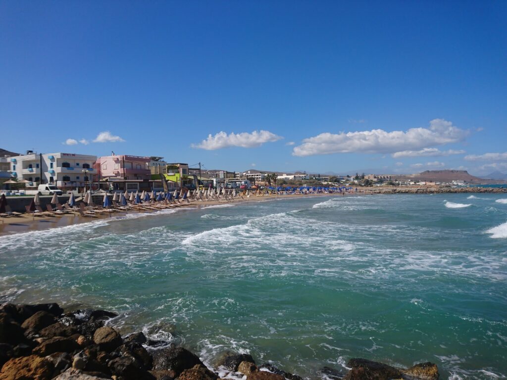 - Local Charm: The area has a more traditional, unpretentious feel. A coastal road runs along the beach, lined with a few friendly tavernas and cafes that offer a more authentic Cretan experience.