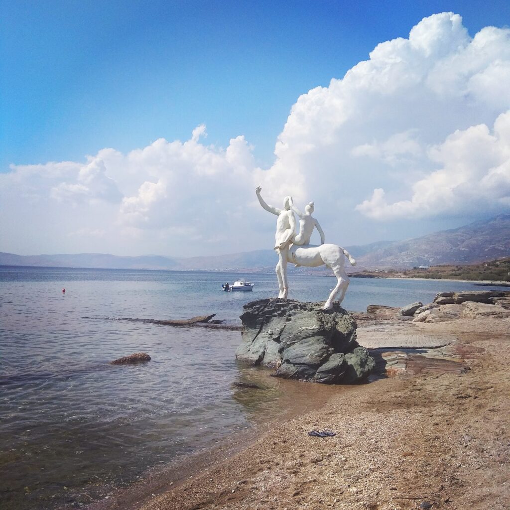 - Picturesque & Artistic: The beach is iconic for the Statue of the Centaur and the Nymph, a striking bronze sculpture set on a rock in the sea. This artistic touch, combined with the rugged coastline, makes it one of the most photographed spots near Karystos.