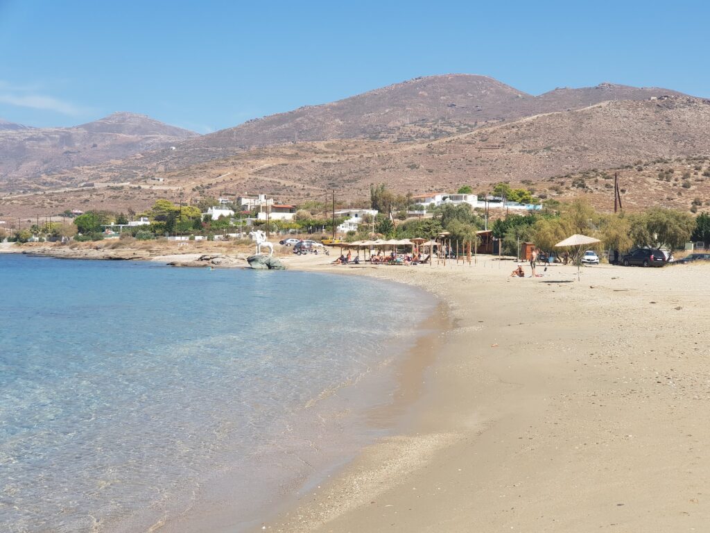 - Wind Protection: Because of its orientation, it is often better sheltered from the strong north winds (Meltemi) that can affect other beaches in the area, leading to calmer swimming conditions.