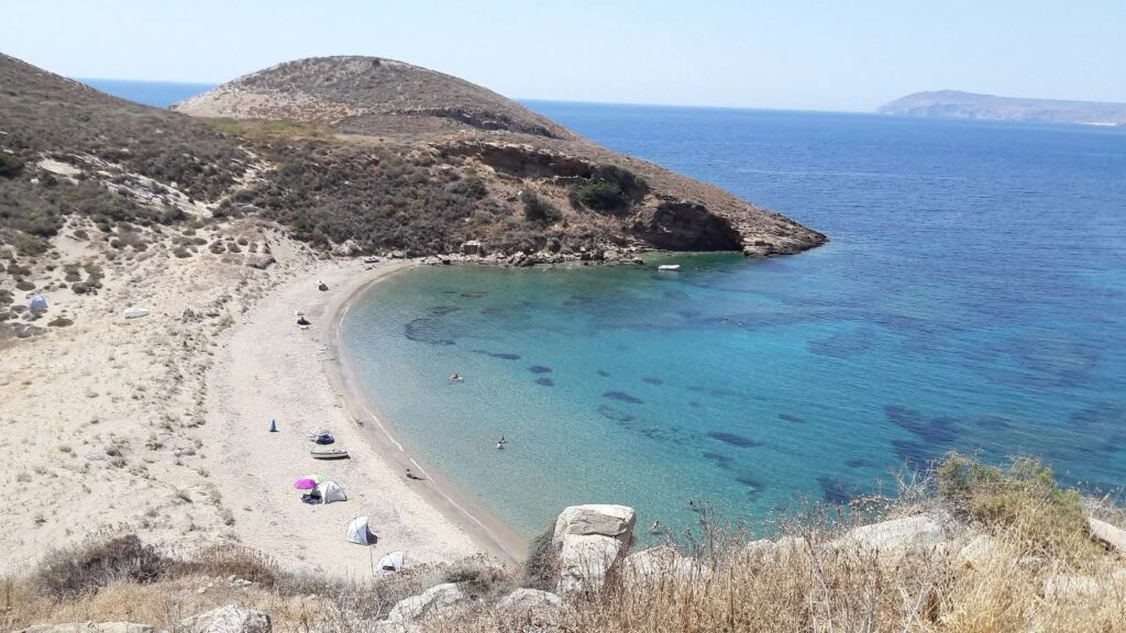 - Access: It is easily reachable by car or taxi from Karystos. You head east through Aetos village, and after a short drive past the “To Rema” taverna, a 200m dirt track leads directly to the beach.