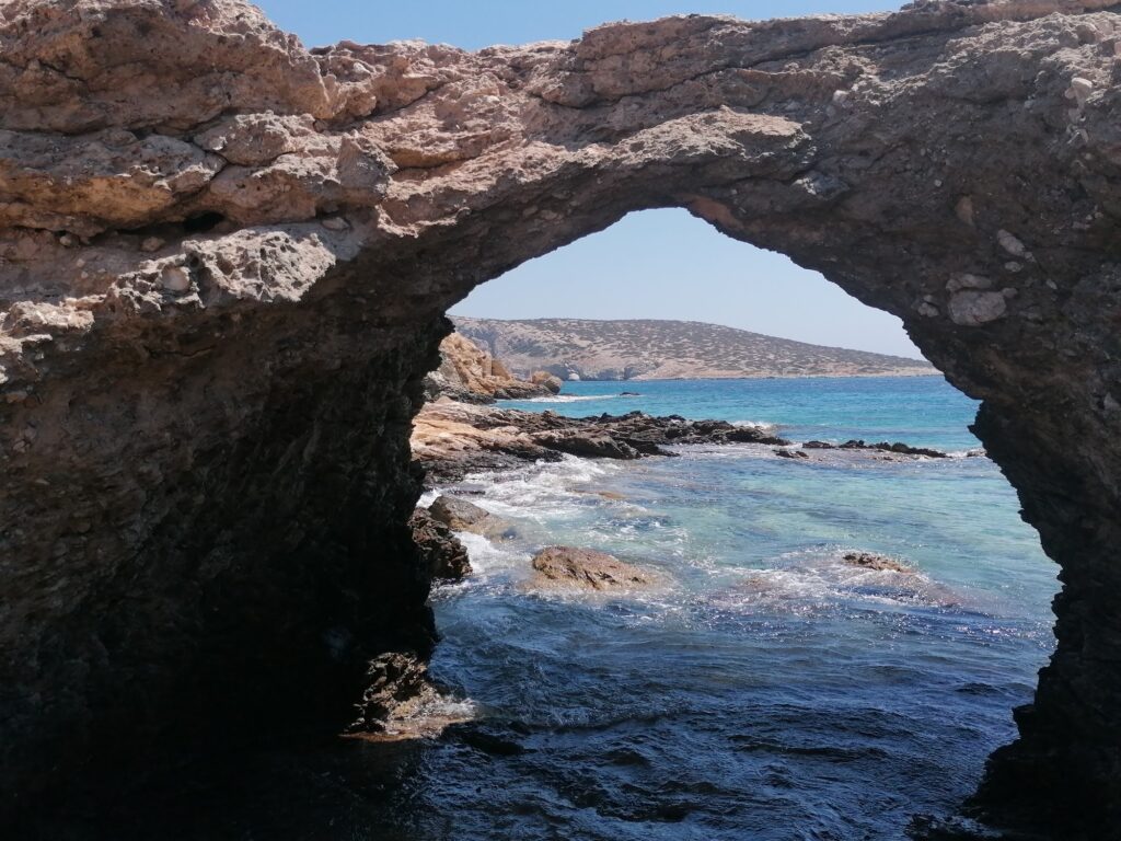 - Protected from Winds: The beach’s most famous feature is its sheltered, horseshoe-shaped bay. Even when the Meltemi winds are blowing hard elsewhere on Amorgos, Kalotaritissa remains calm and flat, making it the island’s most reliable swimming spot on windy days.