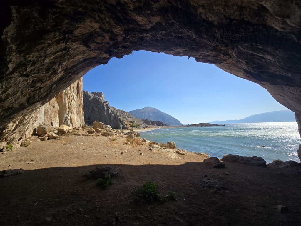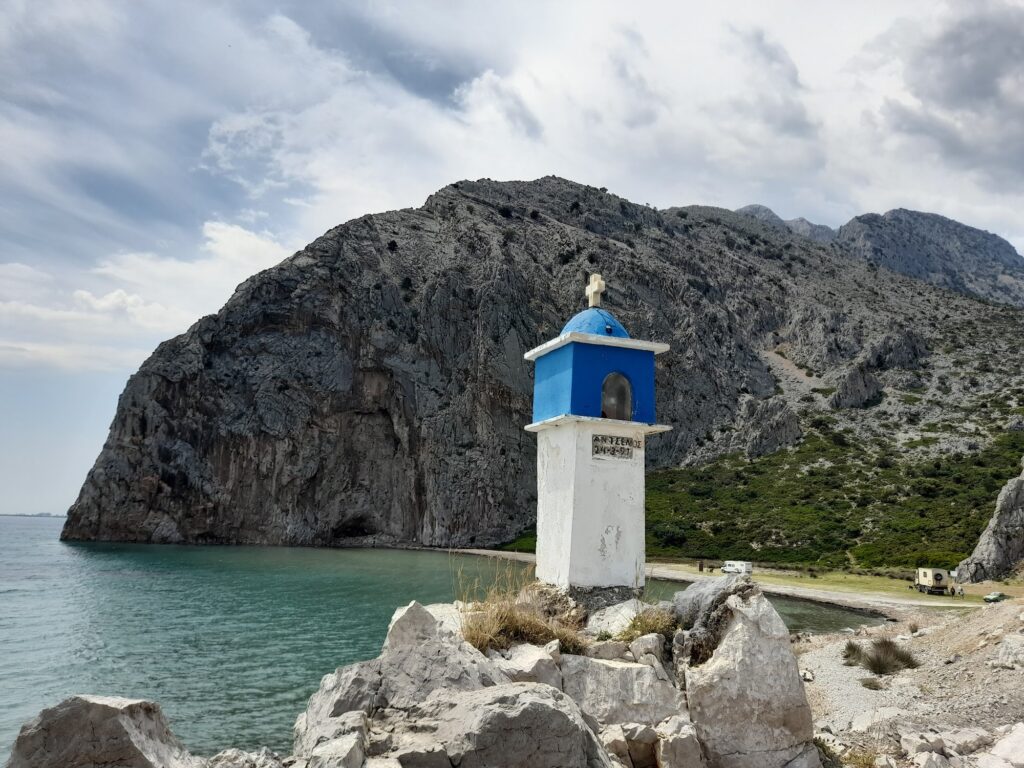 Paralia Limnopoula (Παραλία Λιμνοπούλα) near Chalkeia and Kato Vasiliki is a secluded “hidden gem” known for its wild, natural beauty
