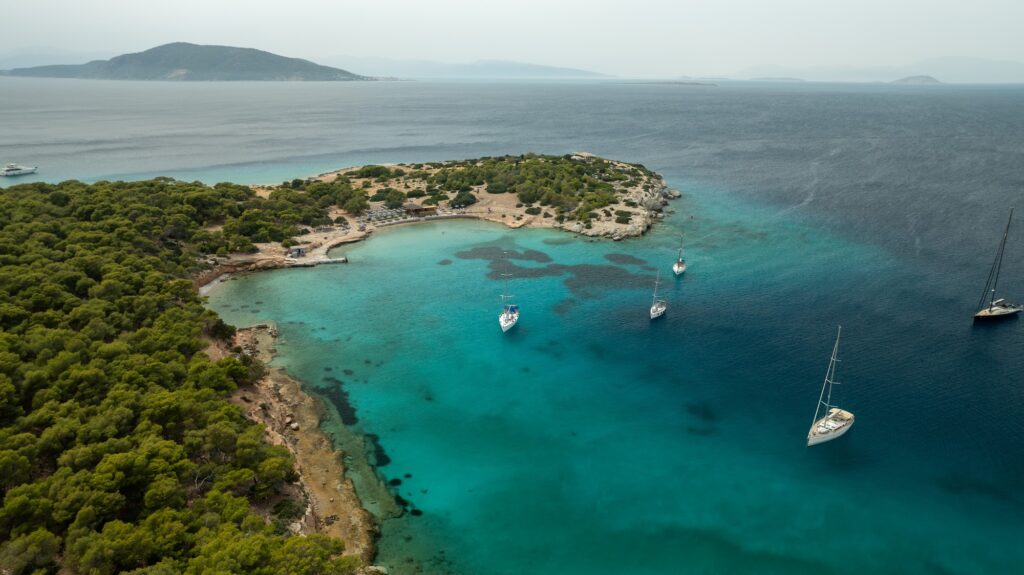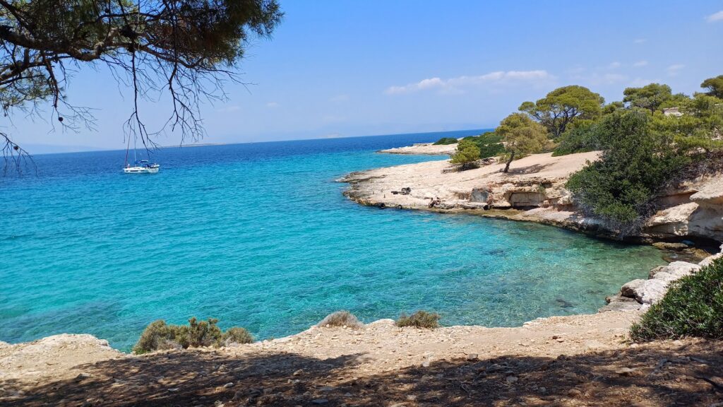 - Views: The beach offers stunning views across the water back toward the village of Perdika and Aegina island.