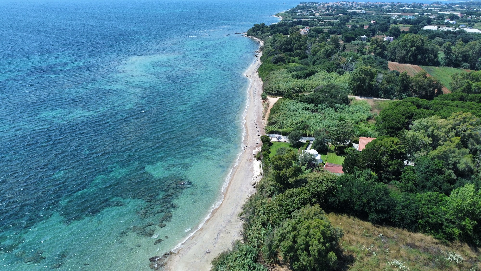 Pristine Beach Access: A short, suggestive path through a wild reed bed leads you directly to a “natural” beach just 200 meters away. The water is exceptionally clean, shallow at the shore, and crystal-clear—ideal for snorkeling among the rocks.