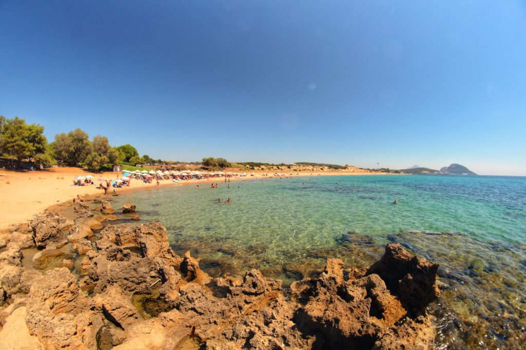 - Dining: Nearby tavernas and beach bars offer refreshments and traditional Greek meals, with many visitors enjoying fresh seafood with a sea view.