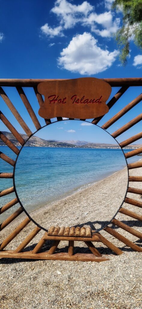 Hot Island Beach Bar in Salamina is a popular, versatile destination that functions as a lively beach club in the summer and a cozy restaurant during the winter.
