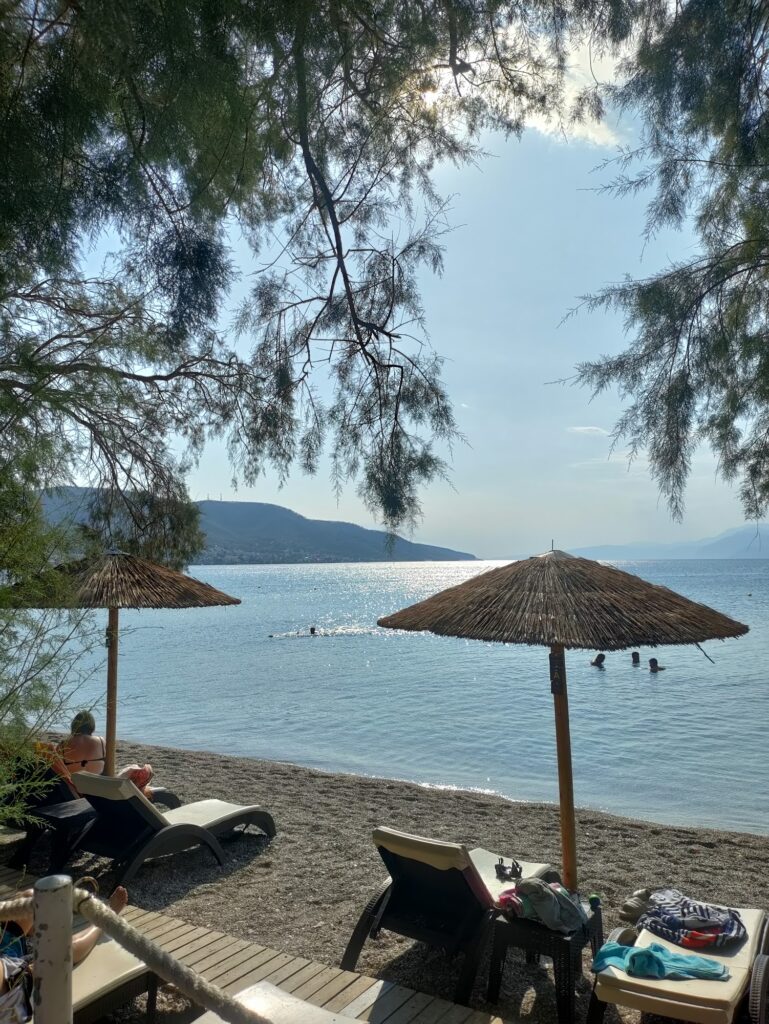 - Sea Views: The beach offers wide views of the Saronic Gulf. While some reviewers find the water pleasant for a swim, others note that it is more of a “relax-by-the-sea” spot than a destination for pristine, exotic snorkeling.