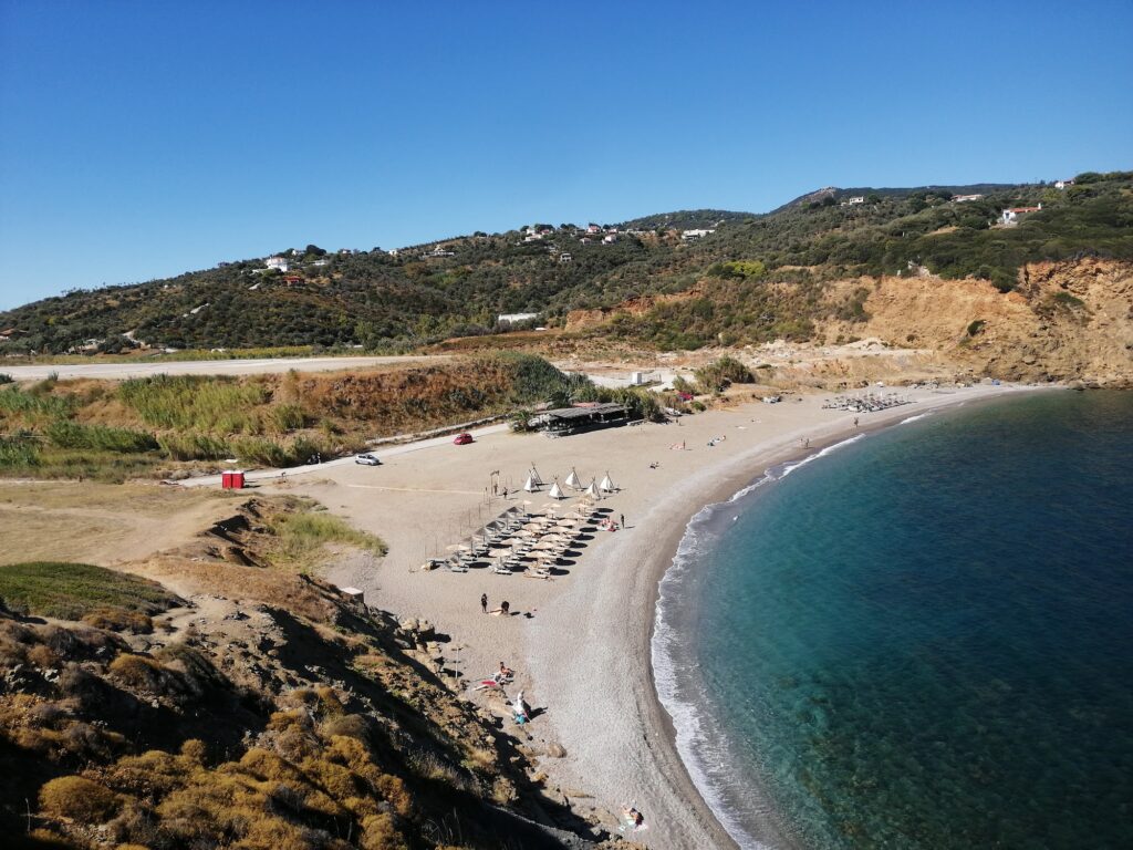 If you are looking for a beach experience that combines the raw power of the Aegean with a unique “aviation” twist, Xanemos Beach is a destination that truly stands out. Located on the northeastern coast of Skiathos, right at the edge of the island’s airport runway, Xanemos offers a professional-standard retreat that is worlds away from the crowded southern resorts. It is a place where the deep blue sea meets the dramatic landscape of the North Sporades, providing a sensory experience that is both exhilarating and deeply relaxing.