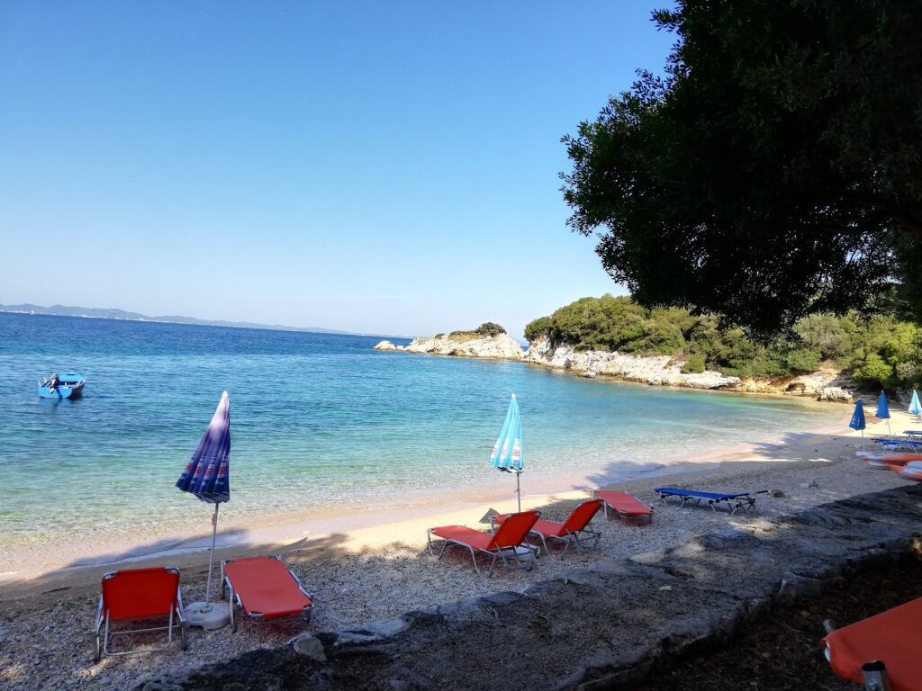 Zavia Beach in Syvota is a charming, small bay known for its distinctive green-tinted waters and lush, shaded surroundings. Atmosphere