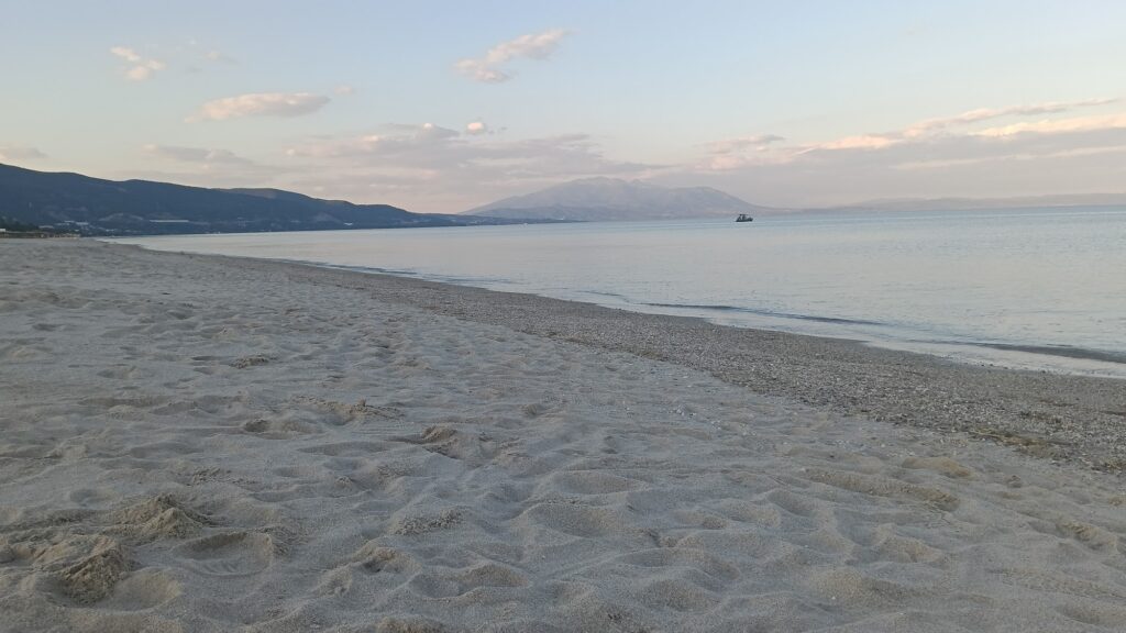 Kavourina Beach in the Pydna-Kolindros region of northern Greece is a quiet and unassuming coastal spot. Located about 35 km