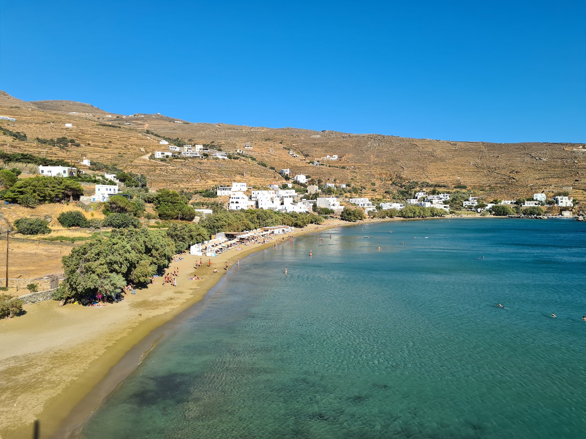 Paralia Agios Romanos (Agios Romanos Beach) on Tinos is a beloved destination, especially valued for being one of the most sheltered spots on the island.
