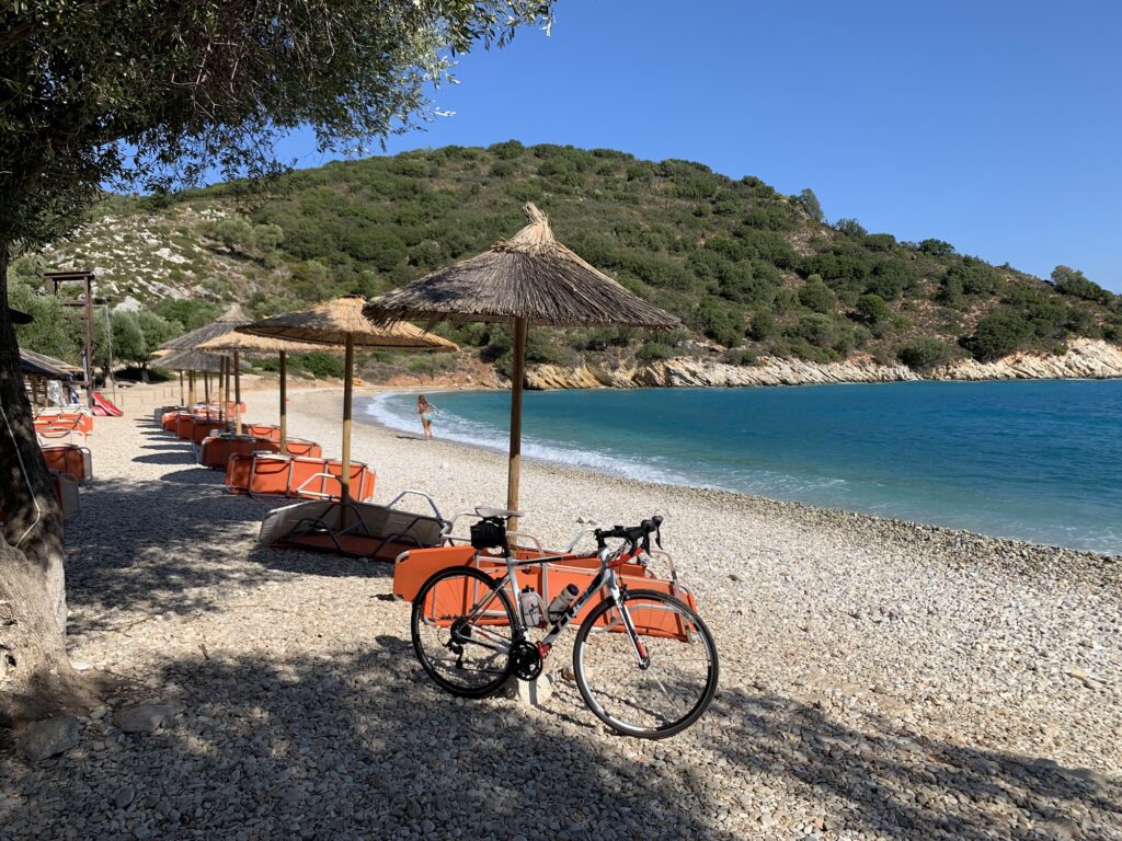 Unlike many of the remote, “bring-your-own-water” coves on Ithaca, Filiatro Beach is fully organized. It caters to a cosmopolitan crowd, including day-trippers from nearby islands and yacht travelers who moor their boats in the deep bay.