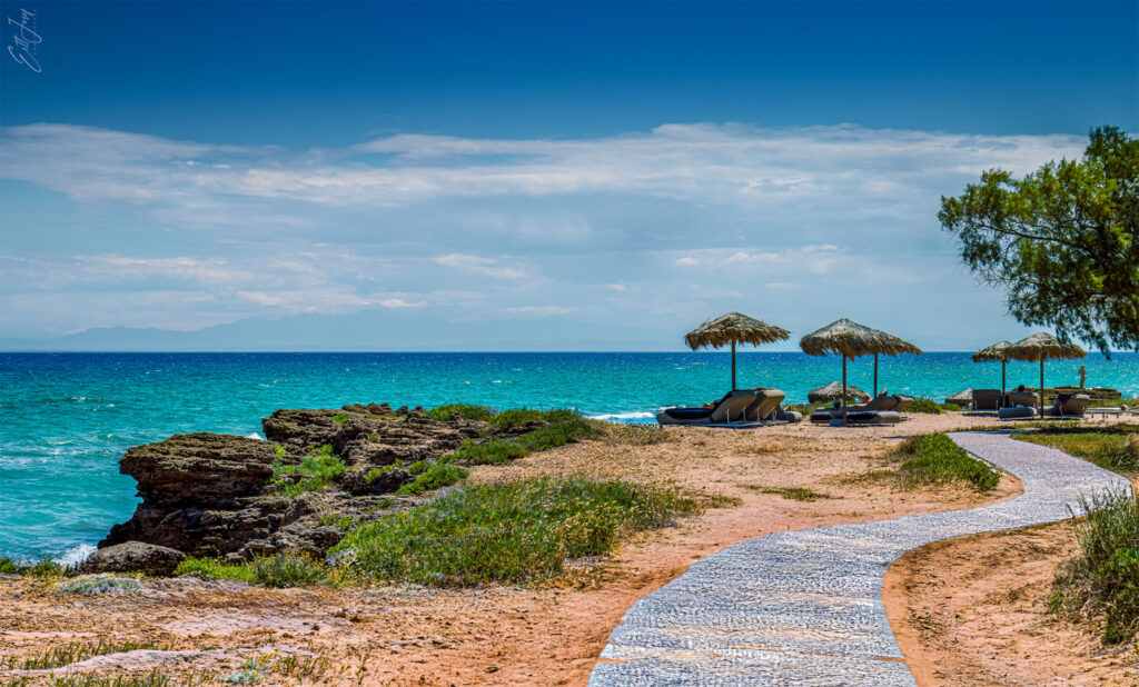 - Green Backdrop: The beach is surrounded by the lush greenery typical of the Vasilikos peninsula, providing a scenic and refreshing natural setting.